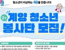 [ 한국미디어뉴스 이원희 기자 ] 인천시 계양구자원봉사센터는 청소년들의 공동체 의식 함양과 사회참여 역량을 강화를 위해 ‘제2기 계양 청소년봉사단’ 참여자를 모집한다고 밝혔다. 모집 기간은 3월 13일부터 4월 19일까지이며, 계양구 소재 학교 또는 기관에 소속된 청소년과 봉사활동에 관심이 있는 중·고등학생 등 총 20명을 선착순 모집한다. 청소년봉사단은 ▲자원봉사 기본교육 ▲지역기관 연계 봉사활동 ▲환경정화 및 환경캠페인 ▲지역사회 나눔활동 ▲농촌봉사 등 다양한 테마형 봉사활동에 참여하게 된다. 특히 올해는 지역 내 기관 및 단체와 연계한 봉사활동을 확대해 청소년들이 지역사회와 함께하는 봉사활동을 경험하고, 공동체 의식과 사회참여 역량을 키울 수 있도록 운영할 계획이다. 봉사단 활동에 참여한 청소년에게는 자원봉사 교육 제공, 봉사시간 인정, 우수 봉사단원 표창 등의 혜택이 제공된다. 참여 신청은 ‘1365 자원봉사포털’에서 온라인으로 신청하거나, 홍보 포스터 내 삽입된 큐알(QR) 코드로 접속해 신청할 수 있다. 기타 자세한 사항은 계양구자원봉사센터로 문의하면 된다.