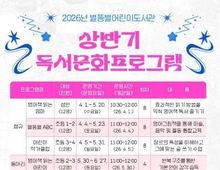 [ 한국미디어뉴스 이원희 기자 ] (재)인천광역시계양구인재양성교육재단 별똥별어린이도서관은 지역주민을 대상으로 2026년 상반기 독서문화프로그램을 운영한다. 상반기 독서문화프로그램은 4월부터 6월까지 진행되며, 다양한 연령층이 참여할 수 있도록 대부분의 강의를 주말과 일요일에 운영한다. 초등학생을 위한 영어 그림책 놀이와 장르별 글쓰기, 성인을 위한 영어책 읽기 강좌와 어린이를 위한 영어책 읽는 동아리를 진행할 예정이다. 세부 프로그램은 ▲별똥별 ABC(초등 1~2학년/무료) ▲어린이 작가클럽(초등 3~4학년/무료) ▲영어책 읽는 엄마(성인/무료)와 동아리 ▲영어책 읽는 어린이(초등 3학년/무료)가 있다. 상반기 독서문화프로그램 수강생은 3월 16일 오전 10시부터 계양구립도서관 누리집에서 선착순으로 모집한다. 보다 자세한 사항은 도서관 누리집에서 독서문화프로그램 안내를 참고하거나 별똥별어린이도서관 자료실로 문의하면 된다.