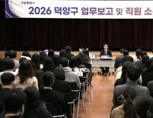 [ 한국미디어뉴스 문상수 기자 ] 고양특례시는 지난 26일 덕양구청 대회의실에서 ‘2026년 덕양구 업무보고 및 직원 소통간담회’를 개최했다. 업무보고에는 이동환 고양시장과 주시운 덕양구청장을 비롯해 구청 13개 과·21개 동행정복지센터의 부서장, 8·9급 저연차 공무원 등 100여 명의 직원이 참석했다. 2026년 업무보고는 주시운 덕양구청장과 부서장의 보고를 통해 민선8기 덕양구 핵심 성과와 2026년 업무 추진 방향을 간략히 공유하고, 직원들과의 자유로운 토론 시간을 확대해 현장의 목소리를 청취하는 데 중점을 뒀다. 이날 부서별 업무보고와 관련해 이동환 시장은 ▲덕양구를 대표하는 창릉천 유채꽃·코스모스 축제의 성공적 개최를 위한 주관 부서와 행신2동 행정복지센터의 적극적인 협조 ▲지적재조사 사업 등 시민 불편 해소를 위한 주요 사업의 속도감 있는 추진을 당부했다. 특히 20~30대 직원들과 격의 없이 소통하는 자유토론 시간이 눈길을 끌었다. CES 2026에서 고양시에 도입하고 싶다고 생각한 기술 분야, 전 세계적인 주목을 받은 ‘고양콘’에 대한 궁금증 등 다양한 주제로 활발한 의견 교환이