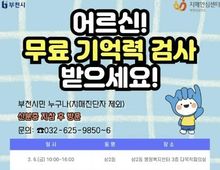 [ 한국미디어뉴스 김만길 기자 ] 부천시는 치매 조기 발견과 중증화 예방을 위해 3월 6일부터 4월 16일까지 ‘2026년 상반기 찾아가는 치매조기검진(동별검진)’을 실시한다. 이번 검진은 60세 이상 부천시민이면 누구나 무료로 받을 수 있으며, 부천시치매안심센터 전문 인력이 동 행정복지센터를 직접 방문해 시민을 대상으로 1대1 인지선별검사를 진행한다. 특히, 치매 고위험군은 인지저하자와 경도인지장애자이며, 집중검진 대상자는 만 75세 이상 독거노인과 만 75세 진입 노인(1951년생 및 이전 출생자)이다. 치매 예방을 위해서는 정기적인 인지기능 점검이 중요한 만큼 해당 대상자의 적극적인 검진 참여가 필요하다. 이에 부천시는 ‘찾아가는 치매조기검진’을 통해 관내 행정복지센터 등을 순회하며 검진을 진행한다. 세부 일정은 포스터와 부천시 홈페이지 게시판에서 확인할 수 있으며, 치매안심센터 등록 대상자에게는 개별 문자 안내를 통해 검진 일정과 장소를 안내할 예정이다. 검진 결과 인지저하가 의심될 경우 부천시 치매안심센터 진단검사 연계와 협약병원 안내, 맞춤형 사례관리, 인지강화 프로그램 등 단계별 서비