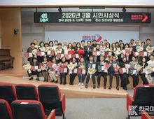[ 한국미디어뉴스 이보영 기자 ] 오산시는 지난 12일 오산시청 대회의실에서 2026년 3월 시민시상식을 개최했다고 밝혔다. 이날 시상식은 이권재 오산시장의 축하 인사에 이어 표창장 전수 및 수여, 단체사진 촬영 순으로 진행됐으며 총 50명의 수상자가 참석해 의미를 더했다. 이번 시상식에서는 선행도민 부문에서 신동성 중앙동 바르게살기위원회 위원장 등 3명이 선정돼 경기도지사 표창을 전수받았다. 또한 각 분야에서 지역사회 발전과 시민복리 증진을 위해 헌신한 공로로 오승택 오산중앙라이온스클럽 회원 등 66명이 시정발전 유공 표창을 수상했다. 이권재 오산시장은 “수상을 진심으로 축하드린다”며 “앞으로도 각자의 자리에서 지역사회를 위한 따뜻한 실천을 이어가며 오산시 발전과 시민복리 향상에 함께 힘써주시길 바란다”고 말했다.