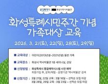 [ 한국미디어뉴스 이원영 기자 ] 화성시 역사박물관이 화성특례시민주간을 기념해 3월 21일과 22일, 28일, 29일 총 4일간 주말 교육 프로그램과 사회관계망서비스(SNS) 이벤트를 운영한다. 이번 행사는 시민들이 화성의 지리와 환경을 이해하고 미래 도시의 모습을 창의적으로 그려볼 수 있는 기회를 제공하고자 마련됐다. 화성특례시민주간을 기념해 진행되는 이번 교육은 ▲화성특례시 비행 놀이 ▲미래 교통수단 설계하기 ▲지속 가능 도시 디자인하기 총 3가지 과정으로 구성됐다. 어린이 동반 가족을 대상으로 화성특례시의 지리·환경을 비롯해 동탄도시철도(동탄트램)와 식물원(보타닉가든) 등 주요 추진 사업을 쉽게 이해하고 창의적으로 미래 도시를 상상해 볼 수 있도록 준비했다. SNS 이벤트는 박물관 현장에서 진행된다. 박물관 인스타그램을 팔로우한 후 퀴즈 정답을 맞히면 컵, 장바구니(에코백), 돗자리 중 1종의 기념품을 받을 수 있다. 교육은 사전 예약제로 운영되며, 화성특례시 통합예약시스템을 통해 신청할 수 있다. 16일부터는 21·22일 교육 예약을, 23일부터는 28·29일 교육 예약을 할 수 있다. 모집 인원은 선