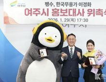 [ 한국미디어뉴스 이원영 기자 ] 여주시는 지난 29일 시청 시장실에서 이충우 여주시장과 관련 국‧과장이 참석한 가운데 EBS ‘자이언트 펭TV’의 마스코트 캐릭터 펭수와, 한국무용가 이경화를 홍보대사로 위촉했다고 밝혔다. 펭수는 2019년 4월 EBS 어린이 프로그램 ‘자이언트 펭TV’로 혜성처럼 등장하여 어린이 팬층을 넘어서 전 세대의 귀여움까지 독차지하는 유례없는 인기를 선보이며 현재 구독자 170만명의 유튜브 채널 마스코트 캐릭터로 활동하고 있으며, 신곡을 3곡이나 출시한 가수이기도 하다. 한편 펭수는 2023년 여주도자기축제를 시작으로 3년 연속 도자기축제에 초대손님으로 참석하면서 여주와의 사랑을 이어왔다. 작년 도자기축제에서는 펭수의 캐릭터가 새겨진 도자기가 완판될 정도로 여주시민의 열렬한 환영을 받아왔다. 이날 함께 홍보대사로 위촉된 이경화 (사)오연문화예술원 이사장은 1988년 서울올림픽 폐막식 공연, 2002년 한일월드컵 개막식 공연의 안무와 지도를 맡았던 한국을 대표하는 무용가이자 안무가로 활동해왔으며, 전세계 400여개 도시에서 한국 무용의 아름다움을 전파한 공로로 2003년 해외홍보유공