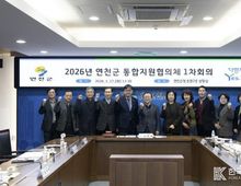 [ 한국미디어뉴스 김서안 기자 ] 연천군은 지난 27일 군청 본관 2층 상황실에서 군수 주관으로 제1차 통합지원협의체 회의를 개최했다. 이번 회의에서는 '연천군 지역 돌봄 통합지원에 관한 조례'에 따라 구성된 통합지원협의체 17명(당연직 7명, 위촉직 10명) 중 11명이 참석해, 지역 실정에 맞는 연천형 통합돌봄 체계 구축을 위한 추진 방향과 협력 방안을 논의했다. 통합지원협의체는 노쇠, 장애, 질병, 사고 등으로 돌봄이 필요한 군민이 살던 곳에서 가족, 이웃과 함께 편안하고 행복한 노후를 유지할 수 있도록 지역계획의 수립 및 평가, 통합지원 시책 추진에 관한 사항 등을 심의·자문하는 기구다. 이날 회의에서는 통합지원협의체 위원 위촉식을 시작으로 ▲통합지원협의체 부위원장(연천군 의사협회장 홍성태, 홍이비인후과의원 원장) 선출 ▲의료·요양 통합돌봄 추진 배경 및 2026년 연천군 통합돌봄 실행계획서 심의·의결 ▲연천군 통합돌봄 사업 추진 현황 ▲지역 자원 발굴 및 네트워크 구축 ▲향후 협의체 운영 계획 등에 대해 심도 있는 논의가 이뤄졌다. 연천군 관계자는 “의료와 요양, 복지 서비스가 유기적으로