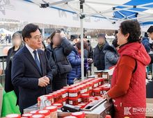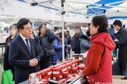 [ 한국미디어뉴스 이보영 기자 ] 진교훈 서울 강서구청장이 5일 마곡광장에서 열린 ‘설맞이 농특산물 직거래장터’를 찾았다. 이날 진 구청장은 장터 내 점포 곳곳을 들려 임실치즈, 밀양딸기 등 지역 농특산물을 직접 구입하고 상인들과 장을 보러 나온 주민들에게 다가가 친근하게 새해 인사를 나눴다. 설맞이 직거래장터는 오는 6일(금)까지 계속된다. 운영시간은 오전 10시부터 오후 6시까지다. 장터에는 임실군, 상주시, 태안군, 강릉시, 여수시, 함안군, 순천시, 정읍시, 괴산군, 완주군, 평창시, 남원시, 밀양시, 청양군, 논산시 등 15개 지자체에서 39개 업체가 참여했으며, 각 지역의 다양한 농특산물을 시중보다 저렴하게 구입할 수 있다. 특히, 장터에선 강서구 특산품인 ‘경복궁 쌀’과 이를 원료로 만든 ‘나루생막걸리’도 함께 선보여 방문객들의 발길을 사로잡았다. 진교훈 구청장은 “장터에 나오셔서 각 지역의 농특산물을 합리적인 가격으로 구매해 보시길 바란다”고 말했다.