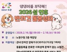 [ 한국미디어뉴스 이보영 기자 ] 서울 노원구가 오는 2일부터 설 연휴 ‘반려견 돌봄쉼터’ 이용자를 모집한다고 밝혔다. 반려견 돌봄쉼터는 명절 연휴에 발생하기 쉬운 유기견 문제를 예방하고, 반려동물과 보호자가 모두 안심할 수 있는 돌봄 환경을 조성하기 위해 마련됐다. 구는 2018년 추석을 시작으로 설·추석 명절마다 돌봄쉼터를 꾸준히 운영해 왔다. 이용자 만족도 또한 매우 높다. 지난 설 연휴 이용자를 대상으로 한 만족도 조사에서 응답자 전원이 ‘재이용 의사 있음’이라고 답해, 보호자들 사이에서 ‘믿고 맡기는 명절 돌봄 서비스’로 자리 잡았다. 올해는 설 전날인 2월 16일부터 18일까지 3일간 운영한다. 2월 2일부터 6일까지 노원구청 홈페이지를 통해 선착순 접수하며, 가구당 1마리씩 총 30마리를 모집한다. 위탁비는 5,000원으로, 독거 어르신·장애인·기초생활수급자 등 취약계층은 전화 신청도 가능하다. 이용 대상은 ▲노원구민이 양육하는 ▲출생 후 6개월 이상 ▲동물 등록과 광견병 예방접종을 완료한 건강상태 양호한 ▲8kg 이하 소형견이다. 사회성에 문제가 없고 전염성 질환견이나 임신·발정 중