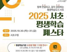 [ 한국미디어뉴스 이보영 기자 ] 서울 서초구는 지역 내 평생학습기관들의 성과를 공유하고 주민들의 평생학습 문화를 확산하기 위해 오는 30일, 31일 이틀간 ‘2025 서초 평생학습 페스타’를 개최한다고 밝혔다. ‘2025 서초 평생학습 페스타’는 올해 처음 개최되는 행사로, 지역 내 다양한 평생학습기관의 수강생과 관계자, 주민들이 교류하며 함께 배우고 성장하는 기회를 제공하기 위해 마련됐다. 평생학습관, 아버지센터, 서초여성가족플라자, 까리따스방배종합복지관, 반포도서관 등 21개 기관이 함께한다. 오는 30일부터 이틀간 서초구청 1층 로비와 2층 대강당에서 진행되는 행사는 ▲평생학습기관 수강생 작품전시 ▲평생학습 프로그램 체험부스 ▲명사와의 토크콘서트 등으로 다채롭게 구성됐다. 먼저, 평생학습기관 수강생 작품 전시는 행사 기간 내내 구청 1층 로비에서 진행된다. 11개 기관 수강생들의 작품 110점이 전시되는데, 특히 3D 공예품, AI 미디어아트 등 최신 기술을 접목한 작품들이 포함돼 강의의 높은 수준과 수강생들의 뛰어난 역량을 선보일 예정이다. 이어서 평생학습 프로그램 체험부스는 31일 구청
