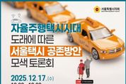 [ 한국미디어뉴스 이원영 기자 ] 서울특별시의회 교통위원회(위원장 이병윤, 국민의힘, 동대문1)는 2025년 12월 17일 10시, 서울시의회 의원회관 제2대회의실에서 “자율주행택시시대 도래에 따른 서울택시 공존방안 모색 토론회”라는 주제로 토론회를 개최했다. 서울시의회가 주최하고 교통위원회가 주관한 이번 토론회는 이병윤 교통위원장 개회사로 시작됐으며 김동완 서울특별시택시운송사업조합 이사장의 축사와 함께 문성호 서울시 의원이 사회를 맡았다. 자율주행택시에 대한 주제 발제는 한국개발연구원(KDI) 김동영 전문연구원이 진행했으며, 이어지는 토론에서는 이경숙 교통위원회 부위원장이 좌장을 맡아 논의를 이끌었다. 토론자로는 김거중 한국교통연구원 부연구위원, 장정아 아주대학교 연구교수, 이우영 HC택시 대표이사, 박준환 국회입법조사처 팀장, 정준호 서울시 의원, 손형권 택시정책과장이 참여하여 토론이 진행됐다. 이 날 토론회에서는 자율주행 시대의 도래에 발맞춰 택시 산업의 지속 가능한 발전을 위한 준비가 필요하다는 데에 공감대를 형성했다. 아울러 기존 택시 시장과 첨단기술이 상생할 수 있는 자율주행 서비스 도입 방안을 모