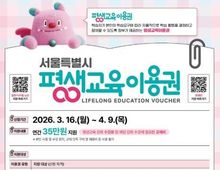 [ 한국미디어뉴스 이원영 기자 ] 서울 도봉구가 2026년 평생교육이용권 신청자를 4월 9일까지 접수한다. ‘평생교육이용권’은 시민이 원하는 평생교육 강좌에 대한 수강료와 강좌에 필요한 교재비 등을 지원하는 제도다. 교육비는 1인당 연간 35만 원의 포인트 형태로 제공한다. 이용은 포인트가 충전된 NH농협은행 채움카드로 가능하며 사용은 평생교육이용권 사용기관으로 등록된 곳에서 가능하다. 올해 지원 인원은 ▲일반 이용권 475명 ▲디지털 이용권 58명 ▲노인 이용권 55명 ▲장애인 이용권 63명, 총 651명이다. 지원 대상자 선정은 선정 인원보다 신청 인원이 많을 경우, 우선 선발 기준에 따라 대상자를 확정한다. 신청은 평생교육이용권 또는 정부24 누리집으로 하면 되며, 온라인 신청이 어려운 65세 이상 노인과 장애인은 도봉구청 교육지원과로 방문 신청해도 된다. 오언석 도봉구청장은 “평생이용권을 통해 주민들이 다양한 학습 기회를 누리고 새로운 도전에 나설 수 있기를 바란다.”라고 말했다.