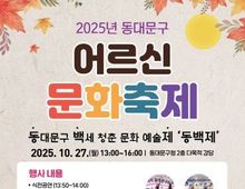 [ 한국미디어뉴스 이보영 기자 ] 서울 동대문구는 오는 27일 구청 2층 다목적강당에서 '2025년 동대문구 어르신 문화축제 ‘동백제’'를 개최한다고 밝혔다. 이번 축제는 지역 어르신들에게 다양한 공연과 문화 체험의 기회를 제공하기 위해 마련된 자리로, 동대문노인종합복지관(관장 김윤태)이 주관한다. 행사에는 관내 어르신 및 지역주민 등 800여 명이 참여할 예정이다. 행사는 구청 2층 다목적강당에서 오후 1시부터 4시까지 진행되며, 동대문구립여성합창단의 식전 공연을 시작으로 기념식(축사, 노인복지기여자 시상 등)이 이어진다. 이후 북마마의 난타공연, 신나는예술단의 전문공연 등으로 구성된 어르신행복무대가 꾸며지고, 트로트 가수 노지훈의 축하공연도 준비되어 있어 흥겨운 무대를 선사할 예정이다. 방문객들에게는 소정의 기념품도 증정된다. 아울러 구청 2층 아트갤러리(로비)에서는 4컷사진관, 캘리그라피 등 체험형 문화 나눔 부스가 운영되어 어르신들이 직접 체험하며 즐길 수 있는 공간도 함께 마련된다. 이필형 동대문구청장은 “이번 축제를 통해 어르신들이 문화의 주체로서 즐겁고 활기찬 하루를 보내는 축제의 장