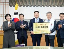 [ 한국미디어뉴스 이원영 기자 ] 전북특별자치도의회 문승우 의장(군산4)은 19일 의장실에서 대한적십자 전북특별자치도지사 김홍식 회장에게 적십자 특별회비를 전달했다. 적십자 특별회비는 도민의 자율적 참여로 모금되며 재난 이재민 구호와 위기가정 긴급지원, 취약계층 복지증진 등의 다양한 지원 사업에 사용된다. 문승우 의장은 "소외된 이웃사랑 실천을 위해 헌신을 다하는 대한적십자 전북특별자치도지사에 대한 감사한 마음이 크다" 면서 "장기화되고 있는 경기침체 속에서 어려운 이웃을 위해 미력하나마 보탬이 될 수 있어 기쁘다"고 말했다. 그러면서 "도민들이 적십자 회비 보금행사에 적극적으로 참여한다면 어려움에 처해 있는 소외계층에게는 커다란 용기와 힘이 될 것"이라고 강조했다. 한편 지난 1일부터 시작된 1차 적십자회비 집중모금 행사는 내년 1월 31일까지 펼쳐지며, 내년 2월 1일부터 3월 31일까지 2차 모금이 진행된다. 참여 방법은 지로와 인터넷, 가상계좌, 큐알(QR) 코드 등의 방법으로 가능하며, 연말정산 시 세액공제 혜택도 주어진다.
