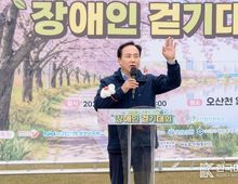 [ 한국미디어뉴스 이원영 기자 ] 오산시장애인체육회는 공동주관인 JCI오산청년회의소와 함께 장애인의 날(4월 20일)을 기념해 지난 11일 오산천 일원에서 ‘2026 가족과 함께하는 장애인 걷기대회’를 개최했다고 밝혔다. 이번 걷기대회는 오산천 왕복 4km 구간에서 진행됐으며, 이권재 오산시장(오산시장애인체육회장)을 비롯해 도·시의원, 유관기관 및 장애유형별 단체장, 오산시장애인체육회 종목별 가맹단체장 및 임원과 시민 등 450여 명이 참여해 장애인과 비장애인이 함께 어우러지는 화합의 장을 만들었다. 특히 휠체어 이용자와 보행이 불편한 참가자들도 안전하게 참여할 수 있도록 무장애 동선을 마련하고, 자원봉사자들이 이동을 지원해 모두가 함께하는 행사로 의미를 더했다. 행사에서는 통기타 동아리 ‘해오랑’의 공연과 (사)전국장애인부모연대 경기도지부 오산지회 산하 권리중심형 일자리 참여자들로 구성된 ‘우당탕탕’ 댄스동아리의 공연이 이어지며 참가자들에게 즐거움을 선사했다. 이권재 오산시장은 “이번 걷기대회를 통해 장애와 비장애의 경계를 허물고 서로를 존중하는 사회 분위기가 확산되길 기대한다”며 “앞으로도 모