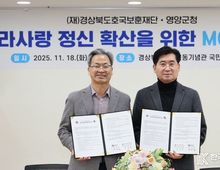 [ 한국미디어뉴스 이원영 기자 ] 영양군은 11월 18일경상북도독립운동기념관에서(재)경상북도호국보훈재단과 남자현지사역사공원 활성화 및 보훈문화 확산을 위한 업무협약을 체결했다. 이번 협약은 영양군이 조성한 남자현지사역사공원의 운영활성화, 독립운동정신계승, 보훈문화 확산을 위해 양기관이 긴밀히 협력하기 위한 것으로, 공원 체험 프로그램개발, 학술연구, 기획전시, 보훈선양행사 등의 공동개발이 협력 내용에 포함됐다. 영양군은 이번 협약을 계기로 남자현지사의 항일독립정신을 기념하는 다양한 콘텐츠를 발굴해 지역주민과 방문객에게 제공하고, 국가보훈부 및 관련 단체와의 연계를 강화해 지역의 역사·문화 가치 제고와 보훈의식 함양을 추진한다는 계획이다. 오도창 영양군수는 남자현지사역사공원이 지역을 대표하는 역사문화 공간으로 자리매김할 수 있도록 전문성을 가진 경상북도호국보훈재단과 의미있는 동행을 시작한다며 “이번 협약이 영양군 보훈사업의 새로운 전환점이 되길 기대한다”고 말했다.