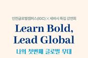 [ 한국미디어뉴스 이원영 기자 ] 인천글로벌캠퍼스운영재단(이하 IGC 운영재단, 대표이사 박병근)은 ‘세상을 바꾸는 시간 15분(이하 세바시)’과 함께 10월 30일(목) 오후 6시에 인천글로벌캠퍼스 대강당에서 ‘나의 첫 번째 글로벌 무대’를 주제로 하여 특집 강연회를 개최한다고 16일 밝혔다. 이번 특집 강연회에서는 ‘나의 첫 번째 글로벌 무대’라는 주제 아래 총 5명의 연사가 릴레이 강연을 펼친다. 연사는 ▲한국조지메이슨대 국제학과 이규탁 교수, ▲숭실사이버대 기독교상담복지학과 이호선 학과장, ▲펜실베이니아주립대 사회학과 샘 리처즈 교수, ▲언바운드랩데브 조용민 대표(전 구글 상무), ▲한양대 로봇공학과 한재권 교수((주)에이로봇 CTO)이며, 연사들은 이날 주제와 자신의 전문분야를 연결지어 인천 시민들에게 깊이 있는 메시지를 전할 예정이다. 인천 시민들은 물론이고, 이번 강연회에 관심이 있는 누구나 사전 신청 후 무료로 참석할 수 있다. 사전 신청은 오는 26일 자정까지 세바시 홈페이지 또는 포스터의 QR코드를 통해서 가능하다. 박병근 IGC 운영재단 대표이사는 “인천글로벌캠퍼스는 안정화 단계를 지났으며, 세계적 수준의 글로벌 교육허브로 빠르게 발돋움해