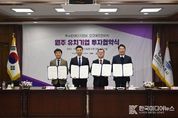 [ 한국미디어뉴스 이원영 기자 ] 원주시는 27일 오전 11시, 강원특별자치도청 신관 2층 소회의실에서 원강수 시장, 김진태 도지사, 이명심 로로에프엔비㈜ 상무이사, 정동인 ㈜수반에이치앤비 대표이사 등이 참석한 가운데 원주 공장 신설을 위한 투자협약을 체결했다. 이번 협약을 통해 두 기업은 원주 문막반계산업단지와 기업도시에 제조공장을 설립하고, 원주시는 기업의 원활한 투자활동을 위해 행·재정적으로 지원할 방침이다. 로로에프엔비는 원주시 부론면에 소재한 프리미엄 디저트 전문 브랜드로, 자체 브랜드 ‘로로멜로(ROROMALLO)’를 출시하며 ‘프로즌스모어’, ‘아이스브륄레’등 차별화된 100% 수제 프리미엄 디저트를 선보여 소비자와 업계의 큰 관심을 받고 있다. 마켓컬리, GS25, CU, 세븐일레븐 등 다양한 유통채널과의 협업을 확장하고 있으며, 아시아 국가를 대상으로 수출을 확대하는 등 늘어나는 수요에 대응하기 위해 제조공장 신설 투자를 결정했다. 2027년까지 문막반계산업단지(8,214㎡)에 134억 원을 투입해 제조공장을 신설하고, 203명을 신규 고용할 계획이다. ㈜수반에이치앤비는 화장품