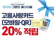 [ 한국미디어뉴스 이종철 기자 ] 고흥군은 전국 대규모 할인 축제인 ‘코리아 그랜드 페스티벌’을 기념해 10월 29일부터 11월 9일까지 12일간 모바일 고흥사랑상품권 20% 적립 이벤트를 진행한다고 밝혔다. ‘코리아 그랜드 페스티벌’은 내수 회복을 위해 정부 10개 부처 합동 주관으로 유통업계와 소상공인 등 3만여 업체가 참여하는 국가 단위 대규모 소비축제로, 10월 29일부터 11월 9일까지 12일간 진행된다. 고흥군은 전국적으로 진행되는 코리아 그랜드 페스티벌에 발맞춰 지역 소비 및 상권 활성화를 위해 모바일 고흥사랑상품권 적립률을 5% 상향해 총 20% 특별 적립 이벤트를 마련했다. 행사 기간 모바일 고흥사랑상품권을 결제하면 결제금액의 20%를 적립할 수 있으며, 적립된 캐쉬백은 가맹점에서 일반 상품권과 동일하게 사용할 수 있다. 모바일 고흥사랑상품권은 ‘지역상품권 chak’ 앱을 통해 충전하며, 고흥사랑카드 또는 chak 어플 QR코드를 이용해 가맹점에서 사용할 수 있다. 군은 이번 20% 특별 적립 이벤트가 11월 6일부터 9일까지 4일간 진행되는 제5회 고흥유자축제의 성공