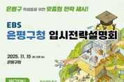 [ 한국미디어뉴스 이보영 기자 ] 서울 은평구는 한국교육방송공사(EBS)와 협력해 오는 15일 은평구청에서 'EBS와 함께하는 은평구 입시전략설명회'를 개최한다고 밝혔다. 이번 설명회는 공교육 기관인 EBS와의 파트너십을 통해 신뢰도 높은 입시 정보를 제공하고, 사교육 의존도를 낮추며 교육격차를 해소하기 위해 마련됐다. 수험생들의 입시전략을 위해 프로그램은 ▲2027학년도 입시 대비 학습전략 특강 ▲2026학년도 정시 대비 1:1 특별 대입 상담 총 두 가지로 구성된다. 상담은 80명을 대상으로 한다. 특강은 이날 오후 2시부터 5시까지 은평구청 5층 은평홀에서 진행된다. 특강에서는 현재 고2 학생 300명을 대상으로 EBS 대표강사 2명이 수능과 내신 국어 학습전략을 설명하고 2027학년도 대입 지원 전략을 안내한다. 1:1 특별 대입 상담은 은평구청 6층 기획상황실에서는 오후 2시부터 6시까지 EBS 진학상담 전문교사 10명이 고3 학생과 N수생 80명을 대상으로 수능 성적에 기반한 1:1 맞춤형 상담을 제공한다. 참가하려면 오는 12일 오후 6시까지 ‘은평배움모아’ 누리집을 통해