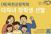[ 한국미디어뉴스 김풍옥 기자 ] 옥천군은 다자녀 가정의 교육 기회를 확대하고 학업지원을 강화하기 위해 2026년 다자녀 장학금 신청을 받는다고 밝혔다. 다자녀 장학금은 2025년 신설된 사업으로, 다자녀 가구의 경제적 부담을 덜고 인구감소 및 저출산 문제에 대응하기 위한 취지로 마련됐다. 올해 신청기간은 오는 3월 16일부터 20일까지이며, 옥천군청 행복교육과 또는 주소지 읍‧면 행정복지센터를 방문해 신청할 수 있다. 지원 대상은 공고일(2월 25일)기준 부 또는 모와 학생이 옥천군에 1년 이상 주민등록을 두고 거주하고 있는 3자녀 이상 가정이다. 자녀 중 초‧중‧고등학교에 재학 중인 학생 1명에 한해 신청할 수 있으며, 관외학교 학생도 가능하다. 장학금 지급액은 ▲초등학생 30만 원 ▲중학생 40만 원 ▲고등학생 50만 원이다. 기본조건 및 신청자격을 충족하는 경우 매년 지원받을 수 있으나, 자동 연장되지 않으므로 지난해 수혜자도 반드시 기간 내 재신청해야 한다. 이번 다자녀 장학금은 옥천군장학회의 다른 장학금과는 중복 수혜가 가능하다. 다만, 타 단체‧기관‧재단 등의 장학금을 신