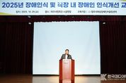 [ 한국미디어뉴스 이원희 기자 ] 파주시는 지난 29일 전 직원을 대상으로 녩년 장애 인식 및 직장 내 장애인 인식개선 교육’을 실시했다. 총 3차에 걸쳐 진행된 이번 교육은 장애에 대한 올바른 이해를 높이고 차별 없는 직장 문화를 조성하기 위해 마련됐다. 명경희 강사, 오규재 강사, 양서연 동반 강사가 차례로 참여해 ‘인권 존중과 포용적 사회’를 주제로 강의를 진행했으며, 장애 이해, 의사소통, 편의 제공, 고용 사례 등을 중심으로 직장 내 인식 개선의 필요성을 강조했다. 특히 발달장애인 당사자인 양서연 강사는 플루트 연주를 선보이며 음악으로 공감과 이해의 메시지를 전하며 큰 호응을 얻었다. 김경일 파주시장은 “이번 교육을 통해 장애인에게 중요한 것은 배려보다는 권리를 존중하는 마음이라는 점을 명확히 하고, 생활 속에서 이를 실천해 주시기를 바란다”라고 말했다.