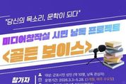[ 한국미디어뉴스 이보영 기자 ] 군포시 중앙도서관은 시민이 직접 참여하는 낭독 콘텐츠 제작을 통해 공공 문화콘텐츠를 확산하고, 시민의 창작 경험을 지원하기 위해 미디어창작실 시민 낭독 프로젝트 '골든 보이스'를 운영한다. '골든 보이스'는 시민이 직접 문학 작품이나 개인 창작물을 낭독하고 이를 도서관 미디어창작실에서 전문 장비를 활용해 녹음·편집하여 오디오북 콘텐츠로 제작·공개하는 프로그램이다. 이번 프로젝트는 단순한 낭독 체험을 넘어 기존 활자에 국한됐던 작품을 시민의 목소리로 직접 듣고 나누는 참여형 프로그램으로 마련됐다. 낭독 경험이 많지 않더라도 문학과 낭독에 관심이 있는 시민이라면 누구나 참여할 수 있다. 프로그램은 2026년 3월 3일부터 5월 28일까지 중앙도서관 1층 미디어창작실에서 운영하며 참여 대상은 군포시 성인 10명 내외이다. 낭독 자료는 참여자의 개인 창작물(에세이, 시 등) 또는 저작권 보호기간이 만료된 한국 문학 작품을 활용한다. 참여 신청은 2026년 1월 26일부터 2월 20일까지 군포시 도서관 누리집을 통해 온라인으로 접수하며 선정된 참여자들은 단체 소통 채널을