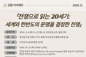 [ 한국미디어뉴스 이원영 기자 ] 인천광역시교육청중앙도서관은 시민들의 인문학적 소양을 높이고 평화의 가치를 확산하기 위해 오는 11월 ‘인문 아카데미’를 운영한다. 이번 아카데미는 ‘벌거벗은 세계사’, ‘역사저널 그날’ 등에 출연한 류한수 상명대학교 교수를 초청해 ‘전쟁으로 읽는 20세기: 세계와 한반도의 운명을 결정한 전쟁’을 주제로 11월 6일부터 27일까지 매주 목요일 오후 7시, 4회에 걸쳐 진행된다 류 교수는 제2차 세계대전의 배경과 전개 과정을 세계사적 시각에서 살펴보며, 전쟁이 한반도와 세계 현대사에 미친 영향을 입체적으로 조명할 예정이다. 또한 11월 18일에는 인천난정평화교육원, 망향대, 대룡시장 등을 방문하는 평화체험 프로그램 ‘격강천리라더니!’를 운영해 시민들이 역사적 현장을 직접 둘러보며 평화의 소중함을 체험할 수 있도록 했다. 참가 신청은 10월 23일 오전 10시부터 중앙도서관 누리집에서 가능하며, 자세한 사항은 종합자료실로 문의하면 된다.