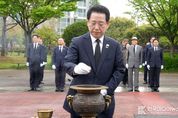 [ 한국미디어뉴스 이원영 기자 ] 전라남도는 4·19혁명 제66주년 기념일인 19일 목포 달맞이공원 4·19 민주혁명 기념비를 찾아 민주영령의 희생과 헌신을 기렸다. 이날 참배에는 김영록 전남도지사와 조석훈 목포시장 권한대행, 4·19혁명 국가유공자와 유족, 전남도 실국장 등 30여 명이 참석했다. 4·19혁명은 민주항쟁사의 커다란 분수령이며, 현대사의 어둠을 걷어내고 민주주의 이념을 확고히 뿌리내린 민주시민혁명으로 평가된다. 특히 광주에서 4월 19일과 20일 고등학생을 중심으로 시위가 시작됐으며, 26일에는 목포와 여수, 27일에는 순천까지 확산하는 등 호남 전역으로 번졌다. 이 과정에서 보여준 청년·학생들의 숭고한 희생과 높은 뜻은 오늘날까지 국민에게 깊은 교훈과 힘이 되고 있다. 김영록 지사는 “4·19혁명이 보여준 연대와 참여의 정신은 오늘날의 중요한 가치”라며 “전남광주통합특별시 출범을 차질 없이 준비해 지역민이 체감하는 삶의 질 향상과 지역 경쟁력 제고로 이어지도록 차분히 추진하겠다”고 말했다.