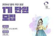 [ 한국미디어뉴스 김서안 기자 ] 포천문화관광재단은 지역 아동·청소년을 위한 문화예술교육 프로그램 ‘2026 꿈의 극단 포천’의 1기 신규 단원을 오는 3월 12일까지 모집한다. ‘꿈의 극단’은 문화체육관광부가 주최하고 한국문화예술교육진흥원과 포천문화관광재단이 주관하며 포천시가 후원하는 사업으로, 아동·청소년이 예술 활동을 통해 자존감을 키우고 공동체 의식을 함양할 수 있도록 지원하는 문화예술교육 프로그램이다. 이번 ‘2026 꿈의 극단 포천’은 일반적인 연극 교육을 넘어 한국 고유의 전통 소리와 춤, 악기가 어우러지는 ‘국극(전통 뮤지컬)’을 특화 교육 과정으로 운영한다. 이를 통해 지역 아동·청소년들이 전통 예술을 놀이처럼 친숙하게 접하고, 우리 문화에 대한 이해와 창의적 표현 능력을 함께 키울 수 있도록 지원할 계획이다. 모집 대상은 초등학교 3학년부터 중학교 2학년까지이며, 해당 연령에 포함되지 않는 초등학교 1·2학년 아동도 ‘예비 단원’으로 신청할 수 있다. 모집 인원은 총 30명이다. 최종 선발된 단원에게는 오는 4월부터 11월까지 포천38문화예술창작소에서 매주 월요일 오후 4시부터