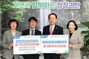 [ 한국미디어뉴스 김풍옥 기자 ] 충북 괴산군은 NH농협은행 괴산군지부(지부장 김대영)가 지역사회를 이끌어갈 인재 육성과 군 발전을 위해 협력사업비 7천만원을 전달했다고 4일 밝혔다. 협력사업비는 금고 약정에 따라 2025년부터 2028년까지 4년간 매년 7천만원씩, 총 2억8천만원이 기탁된다. 괴산군지부는 같은 날 제휴카드 기금 48,872,830원도 함께 전달했다. 기금은 괴산군과의 협약에 따라 군과 군민이 사용한 제휴카드 이용 실적의 일정 비율을 적립해 조성된 재원으로 향후 복지사업과 지역개발사업의 재원으로 활용된다. 김대영 지부장은“이번 기탁이 괴산군의 발전과 군민의 삶의 질 향상에 보탬이 되길 바란다”고 밝혔다. 송인헌 군수는 “NH농협은행 괴산군지부의 지역사회를 위한 따뜻한 마음에 깊이 감사드린다”며 “전달받은 사업비는 괴산군민의 행복과 지역사회 발전을 위해 소중히 사용하겠다”고 말했다.