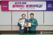 [ 한국미디어뉴스 이원영 기자 ] 부산광역시 남구는 지난 11월 4일, 구청장실에서 동명대학교 이상천 총장에게 감사패를 전달했다고 밝혔다. 이번 감사패는 동명대학교가 올해 2025년 전국(장애인)체육대회를 비롯한 남구의 각종 축제와 행사에서 자원봉사와 태권도 시범 공연을 통해 지역사회 발전에 크게 기여한 공로를 기리기 위해 마련됐다. 전달식에는 오은택 남구청장, 동명대학교 이상천 총장, 원형진 태권도학과장 등이 참석했으며, 오 구청장은 “지역사회의 든든한 동반자로서 학생들과 함께해 준 동명대학교에 진심으로 감사드린다”고 전했다. 동명대학교는 지난 9월 17일 열린 전국체전 자원봉사자 발대식에 60명의 학생이 참석했으며, 10월 17일부터 23일까지 진행된 체전 기간 동안 하루 평균 64명, 누적 300여 명의 학생 자원봉사자를 파견해 경기 운영을 지원했다. 또한 ‘청소년축제’와 ‘유엔(UN)평화축제’ 등 각종 지역 행사에서도 태권도학과 학생들이 수준 높은 시범 공연을 선보이며 남구의 위상을 높였다. 특히, 원형진 태권도학과장과 진대근 교수의 헌신적인 지도 아래 학생들의 적극적인 참여가 이어졌으며, 자원봉사자와