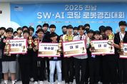 [ 한국미디어뉴스 이종철 기자 ] 전라남도는 청소년의 창의적 문제해결력과 인공지능 융합 역량을 한층 강화하는 위한 2025 전남 SW·AI 코딩 로봇경진대회를 지난 10월 31일까지 이틀간 나주 동신대학교에서 개최했다고 밝혔다. ‘도시의 문제를 해결하는 스마트 로봇’을 주제로 열린 이번 대회는 전남도, 전남도교육청, 나주시가 공동으로 주최하고 (재)전남정보문화산업진흥원이 주관했다. 전남 초·중·고등학생 30개 팀(90명)이 2인 1조로 참가해 일상에서 발견한 문제 해결을 위한 아이디어를 바탕으로 로봇 코딩 실력을 겨뤘다. 평가는 팀별 아이디어 과제 발표, 직접 제작한 로봇 경기로 진행됐다. 경진대회는 교구재를 사전 배부하고 교육해 경험이 부족한 학생들도 쉽고 즐겁게 참여할 수 있도록 하고, 소속 학교 지도교사의 피드백을 통해 로봇과 코딩에 대한 이해도를 높였다. 초등, 중등, 고등 부문별로 각각 대상 1팀, 최우수상 1팀, 우수상 1팀을 선정, (재)전남정보문화산업진흥원장상과 상금이 수여됐다. 대상은 ▲초등부 여수 여도초등학교(Y.E.S.1) ▲중등부 나주 영산중학교(평가문제집) ▲고