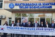 [ 한국미디어뉴스 이종철 기자 ] 전라남도교육청이 10월 27일부터 11월 1일까지 4박 6일간 우즈베키스탄과 카자흐스탄을 방문해 중앙아시아와의 국제 교육협력 강화 방안을 모색했다. 김대중 교육감을 비롯한 전남교육청 방문단은 이 기간 ‘글로컬 인재 양성과 국제교육 네트워크 구축’을 목표로 우즈베키스탄 페르가나주 교육청을 비롯한 학교, 고려인 협회 등을 공식 방문했다. 10월 28일에는 우즈베키스탄 페르가나주교육청과 교육협력 로드맵을 체결했다. 이번 협약을 통해 두 기관은 정례 협의회 운영, 학교·학생·교사 간 교류 확대, 한국어 교육 내실화, 유학생 유치 협력 등 실질적 협력 방안을 마련했으며, 상호 신뢰를 바탕으로 한 지속 가능한 교육교류의 토대를 구축했다. 특히, 별도의 면담에서는 2026년 개교 예정인 전남교육청의 전남미래국제고등학교의 외국인 유학생 교육 프로그램과 한국어·직업교육 과정이 소개됐으며, 페르가나주 내 학생들의 유학 참여를 확대하기 위한 협력 방안이 논의됐다. 김대중 교육감은 “전남미래국제고는 한국의 직업교육과 한국어교육을 결합해 세계 각국 학생이 함께 배우는 국제형 학교”라며, “페르가나