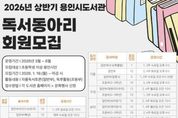 [ 한국미디어뉴스 이원영 기자 ] 용인특례시는 상반기 독서동아리 회원 409명을 모집한다고 6일 밝혔다. 상반기 독서동아리는 동부도서관 5개 도서관(포곡·동백·모현·청덕·남사) 중부도서관 6개 도서관(기흥·구성·보라·흥덕·서농·영덕) 서부도서관 5개 도서관(수지·죽전·상현·성복·동천) 등 총 16개 도서관에서 운영된다. 독서동아리는 일반부(37개)와 초등부(16개) 등 총 53개 동아리로 이뤄졌다. 한 동아리당 10명 내외 인원이 참여한다. 일반부는 회원이 자율적으로 도서를 선정해 함께 읽고 의견을 나누거나 토론하는 형식으로 운영된다. 초등부는 도서관에서 추천하는 책을 중심으로 독후감 쓰기, 만들기, 퀴즈 등 다양한 독후 활동이 진행된다. 상반기 모임은 3월부터 6월까지 운영된다. 도서관 관계자는 “독서동아리 활동은 책을 통해 서로의 생각을 나누고 삶의 지혜를 쌓을 수 있는 뜻깊은 시간”이라며 “많은 시민이 참여해 책 읽는 즐거움을 함께 나누시길 바란다”고 말했다.