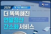 [ 한국미디어뉴스 황영수 기자 ] 더 똑똑해진 연말정산 간소화 서비스 2026년 1월 15일 개통합니다! ■ 더~욱 새로워진 연말정산 간소화 서비스 기존 42개 자료+ 3개 자료 추가 1. 발달 재활 서비스 이용 증명 2. 장애인 활동 지원 급여 본인 부담금 자료 3. 체육시설 이용료 자료 ■ 더~욱 정교해진 소득 기준 초과 부양가족 명단 제공 소득 금액 100만 원 초과 부양가족에 대한 정보 연말정산 간소화 서비스 자료 조회 화면에서 안내 * 근로소득만 있는 경우 총급여 500만 원 - 소득 기준 초과 부양가족 내역 * 자세한 사항은 국세청 블로그를 참고해주세요! ■ AI 전화 챗봇 상담 - 국세 상담센터: ☎126→0번→0번(상담사 또는 AI 상담사 연결) - 세무서: 대표번호→2번→6번(AI 상담사 연결) (AI 상담사) · 주민등록번호 입력 후 본인인증 연말정산 간소화 자료 일괄 제공 현황, 부양가족의 간소화 자료 제공 동의 현황 등 · 생성형 AI 챗봇 상담 시범 운영 경로→홈택스 접속→홈택스 퀵메뉴→챗봇 상담 클릭 *홈택스 ■ 연말
