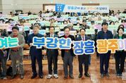 [ 한국미디어뉴스 이종철 기자 ] 광주광역시는 5일 장흥군민회관 대회의실에서 ‘광주전남 통합 장흥군 상생토크’를 열고, 광주전남 통합의 필요성과 장흥 발전 방안에 대해 군민들과 소통했다. 이날 상생토크에는 강기정 광주시장과 김성 장흥군수, 도·군의원, 장흥군민 등 300여 명이 참석해 광주전남 통합에 대한 높은 관심을 보였다. 강기정 광주시장은 광주전남 통합 추진상황과 향후 일정, 정부 지원 특전(인센티브) 등을 설명하며 통합 의지를 밝혔다. 이어 장흥군과 관련한 특별법안 특례조항을 소개하며 지역 맞춤형 발전 전략을 제시했다. 주요 내용으로는 ▲‘햇빛연금’, ‘바람연금’ 등 신재생에너지 기반 확대 ▲문학관광기행특구 활성화 ▲그린바이오 산업 고부가가치 상품 개발 ▲광주-화순-장흥을 잇는 바이오 의료벨트 조성 ▲인공지능(AI)·반도체 인재양성 프로그램 확대 ▲통합 광역생활권 구축 등이 포함됐다. 강 시장은 특히 이청준, 한승원 작가를 비롯해 노벨문학상을 받은 한강 작가의 문학적 탯줄과 같은 장흥에 문학·관광·교육을 접목한 문학관광기행특구를 활성화하겠다고 밝혔다. 이어 강 시장