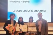 [ 한국미디어뉴스 이원영 기자 ] 경상국립대학교(GNU·총장 권진회) 학생상담센터(센터장 김장회 교육학과 교수)가 전국대학교학생상담센터협의회(전상협)가 주관한 ‘2025년 우수상담기관’에 선정됐다. 이번 선정은 경상국립대학교 학생상담센터가 심리·진로·학습을 아우르는 통합 학생상담 체계를 구축하고, 예방·개입·연계·환류에 이르는 전 과정을 체계적으로 운영하여 재학생의 학교생활을 지원한 노력을 높게 평가한 결과이다. 전국 300여 개 대학의 학생상담센터가 회원으로 등록하여 활동하는 전상협은 매년 12월 개최하는 연차학술대회에서 최근 4년간 가장 모범적으로 운영한 상담센터를 선발하여 우수상담기관으로 인정하고 시상한다. 경상국립대학교 학생상담센터는 2016년 개소 이후 상담 인력 확충, 시스템 고도화, 프로그램 다양화 등 대학 생활 전 주기를 고려한 통합상담 서비스를 제공해 왔다. 특히, 신입생 마음건강 전수조사, 학사경고자 상담, 지도교수 연계 상담, 프렌카운슬러 양성, 찾아가는 상담 등 학생 요구에 기반한 다층적 지원 체계를 마련함으로써 재학생들의 학교 적응과 심리·정서적 안정에 실질적인 도움을 주었다는 평가를