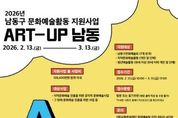 [ 한국미디어뉴스 김만길 기자 ] 인천시 남동구 남동문화재단은 지역 예술인의 안정적인 창작 활동 지원 및 지속 가능한 문화예술 기반 조성을 위해 2026년 남동구 문화예술활동 지원사업인 ‘ART-UP 남동’ 공모를 진행한다고 19일 밝혔다. 지원 대상은 ▲남동구문화예술회 ▲지역문화예술활동 개인 및 단체 ▲청년예술활동 개인 및 단체다. 지원 분야는 ▲발간·전시(문화예술인 및 예술단체의 문학발간, 미술품 전시 등) ▲공연(전문예술가들의 무용, 노래, 국악, 연극 등) ▲문화예술행사(예술인단체나 문화사업단체의 문화예술사업 및 행사·공연 등) 등으로 사업의 규모와 분야를 고려해 차등 지원된다. 올해는 ‘ART-UP 남동’이라는 사업명으로, 기존 지원금의 30% 이상 필수 편성에서 ‘지원금의 10% 이상 필수 편성’으로 자부담 비율을 낮춰 지역 예술 활동의 경제적 부담을 완화했다. 사업은 3월 13일까지 공고되며, 방문 또는 등기우편을 통해 신청할 수 있다. 신청 자격은 남동구에 주소를 두고 지역 안에서 활동하는 예술인과 문화예술단체로, 개인은 1년 이상, 단체는 지원 분야에 따라 1년에서 2