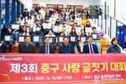 [ 한국미디어뉴스 최치남 기자 ] 인천 중구의회는 12월 16일, 중구 평생학습관에서 개최된 제3회 중구사랑 글짓기 대회 시상식에 참석해 수상자들을 축하했다고 밝혔다. 이날 시상식에는 강후공 의원이 참석해 수상자들에게 축하 인사를 전하고, 참여 학생들과 관계자들을 격려했다. 강후공 의원은 “이번 대회를 통해 지역에 대한 이해와 자긍심이 자연스럽게 형성되고, 올바른 가치관과 표현력을 기르는 계기가 되길 바란다”라며 “중구의회도 지역 정체성과 공동체 의식을 높이는 다양한 문화·교육 활동을 지속적으로 응원하겠다”라고 밝혔다. 또한 앞으로도 주민 참여형 문화·교육 행사를 적극 지원하고, 지역사회와 소통하는 의정활동을 이어갈 계획이라고 말했다.