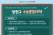 [ 한국미디어뉴스 이보영 기자 ] 양천구는 오는 13일 실시되는 ‘2026학년도 대학수학능력시험’에 응시하는 관내 수험생 5천8백여 명을 위한 교통·소음·안전 등 전방위 수능 종합대책을 마련하고 본격적인 지원에 나선다. 구는 수험생들이 최적의 환경에서 시험에 응시할 수 있도록 수험장 주변 소음 방지 대책을 강화했다. 2개조 4명으로 구성된 소음대책점검반을 편성해 12일까지 수험장 주변 사전실태조사를 실시하고, 소음 유발 요인을 점검·조치할 예정이다. 또 관내 모든 건축공사장과 도로굴착공사를 주관하는 유관기관에 소음 방지 협조공문을 발송하고, 예비소집일과 시험 당일에는 소음 발생 공사를 중지하거나 자제하도록 요청했다. 특히 철저한 소음 차단이 요구되는 ‘3교시 영어 듣기평가(오후 1시 10분~1시 35분)’ 시간대를 집중 점검 구간으로 정해, 현장 통제에 만전을 기할 방침이다. 수험생의 안전한 이동을 위해 ‘특별 교통대책반’을 구성하고, 긴급 상황에 신속히 대응할 수 있도록 수능 당일 새벽 6시부터 교통상황실을 운영한다. 교통 혼잡으로 지각하는 일이 없도록 비상수송 차량 22대(구청 4