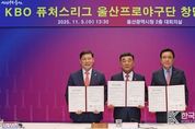 [ 한국미디어뉴스 이원영 기자 ] KBO와 울산광역시(시장 김두겸)는 11월 5일(수) 울산시청에서 KBO 퓨처스리그 참가 협약을 체결했다. 이번 협약을 통해 울산시는 2026년 KBO 퓨처스리그 참가를 위한 선수단 구성과 행정절차를 KBO와 협의해 추진해나갈 예정이다. 또한, 문수야구장 관중석과 실내연습장 증설 및 유스호스텔을 2027년까지 완공하여 팀 훈련과 경기 진행, 선수단 숙소로 활용하는 등 안정적인 퓨처스리그 팀 운영 기반을 갖출 계획이다. KBO는 이번 협약이 지방자치단체가 주체가 되어 프로야구에 참여하는 의미 있는 사례로, 야구저변확대와 선수, 코칭스태프, 프런트 등 다양한 분야의 고용 창출 등을 통한 지역경제 활성화는 물론, 지역민들의 스포츠 관람 및 문화 향유 기회를 더욱 넓히는 계기가 될 것으로 기대하고 있다. KBO 이사회를 통해 울산시의 합류가 확정되면 퓨처스리그 남부리그에 편성될 예정이며, 2026 시즌부터 퓨처스리그는 북부 6팀, 남부 6팀 체제(현재 북부 5팀, 남부 6팀)로 재편해 리그 운영과 경기수 편성의 균형을 맞출 예정이다. 김두겸 울산광역시장은 “