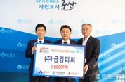 [ 한국미디어뉴스 이원영 기자 ] 군산시는 ㈜금강피씨가 5일 ‘희망2026 나눔캠페인’에 동참하며 어려운 이웃들을 위해 성금 1,000만 원을 전달했다고 밝혔다. 서수면에 위치한 ㈜금강피씨는 암거 등 콘크리트 구조물 개발·생산 전문 기업이다. 특히 ESG 경영 실천의 하나로 2019년부터 꾸준한 기부를 이어오며 누적 1억 원 이상을 기탁해 사랑의 열매 전북16호 ‘나눔명문기업’으로 선정되는 등 지역 나눔문화 확산에 앞장서고 있다. 기탁식에 참석한 서상준 대표는 “한 해를 마무리하며 지역사회에 작게나마 도움이 될 수 있어 뜻깊게 생각한다.”라며 “앞으로도 사회적 책임을 실천하고 지역과 함께 성장하는 기업이 되도록 더욱 노력하겠다.”라고 말했다. 강임준 군산시장은 “매년 지속적인 나눔을 실천해 주는 ㈜금강피씨에 깊이 감사드린다.”라며 “소중한 성금은 동절기 도움이 꼭 필요한 가정에 신속하고 투명하게 전달하겠다.”라고 밝혔다. 한편 군산시는 ‘행복을 더하는 기부, 기부로 바꾸는 전북’을 슬로건으로 12월 1일부터 내년 1월 31일까지 ‘희망2026 나눔캠페인’을 전개해 연말연시 어려운 이웃