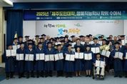 [ 한국미디어뉴스 이원영 기자 ] 제주 농업·수산업·축산업 분야에서 50년 이상 종사한 도민 49명이 각자 삶의 가치를 인정받아 전국 최초로 명예직능학사 학위를 받았다. 제주특별자치도는 29일 도청 탐라홀에서 '2025년 제주도민대학 명예직능학위' 수여식을 개최했다. 수여식에는 오영훈 제주도지사와 학위 수여자, 가족, 농·어업·축산 단체 관계자 등 200여 명이 참석해 평생을 1차산업에 바친 도민들의 공로를 기렸다. 이 제도는 배움의 가치를 학교 교육에만 국한하지 않고, 삶의 현장에서 축적된 전문성과 경험을 사회적으로 인정하기 위해 마련됐다. 농업·수산업·축산업 분야의 도민 49명(농업 35명, 수산업 8명, 축산업 6명)이 명예직능학사 학위를 받았으며, 이들의 평균 연령은 73.5세, 평균 종사 기간은 53.3년에 달했다. 이번에 명예직능학사 학위를 받은 농업 분야의 오병국(76세) 씨는 53년간 제주 농업 현장에서 분투해왔다. 기후변화 시대에 대응하는 고소득 작물을 발굴하고 과학영농을 실천해 지역 농업의 품격을 높인 그는 “농사는 혼자 짓는 게 아니라 함께 나누는 것”이라는 철학