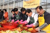 [ 한국미디어뉴스 김풍옥 기자 ] 생거진천 케어팜(대표 이장호)는 19일 지역사회 나눔문화 확산을 위한 ‘2025 생거진천 케어팜 김장축제’를 성황리에 개최했다. 올해 김장축제는 생거진천 케어팜에서 직접 재배한 배추와 지역사회에서 마련된 농산물을 활용해 김장김치를 담가 복지 소외계층, 복지사각 지대 100가구에 전달하기 위해 마련됐다. 특히 진천군 4-H 연합회(회장 성기빈)가 배추 1,500포기, 나눔터에서 성금 100만원을 후원하며 나눔 문화 확산에 큰 의미를 더했다. 현장에는 대한적십자봉사회진천군지구협의회, 진천군여성단체협의회, 진천군4-H연합회, 한국장애인부모회진천군지부, 이월로타리클럽, 대한노인회진천군지회, 진천군노인복지관 선암회 등 다양한 기관·단체, 자원봉사자, 지역 주민 등 100여 명이 참여했다. 송기섭 진천군수는 “지역의 여러 단체와 주민들이 마음을 모아 어려운 이웃을 위해 정성껏 김장을 준비해 주신 데 깊이 감사드린다”고 말했다. 같은 날, 진천군가족센터는 군 여성회관에서 다문화가족 25여 명이 참여한 가운데‘김장 체험과 사랑의 김장 나눔’ 행사를 진행했다. &nb