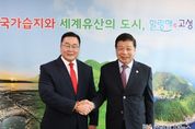 [ 한국미디어뉴스 이원영 기자 ] 고성군은 10월 16일 군수실에서 이상근 군수와 차강 웁궁 자담바 주부산 몽골 영사가 만나 제6회 고성독수리 생태축제 및 한·몽 교류 협력 방안을 논의했다고 밝혔다. 이번 만남은 독수리 보호와 생태관광 네트워크 구축, 한국 거주 몽골 교민의 고성군 방문 추진 등 실무 협의의 일환으로 마련됐다. 이상근 군수는 차강 웁궁 자담바 영사에게 오는 12월 6일부터 7일까지 열리는 ‘제6회 고성독수리 생태축제’에 참석해 줄 것을 요청했으며, 공룡 발자국 화석으로 유명한 고성군과 진품 공룡 화석을 다수 보유한 몽골 간의 과학·교육 교류 방안도 함께 논의했다. 차강 웁궁 자담바 영사는 이날 2025년 경남 고성 공룡세계엑스포 행사장을 방문해 고성군의 문화·관광 인프라를 둘러보고, 향후 양국 간의 문화 교류 확대 가능성에 대한 의견을 나눴다. 이상근 고성군수는 “고성과 몽골은 독수리와 공룡이라는 자연의 유산으로 연결된 소중한 인연”이라며, “이번 방문으로 양국의 우호가 더욱 깊어지고, 고성군이 국제적인 생태·문화도시로 성장할 수 있는 계기가 되길 바란다”라고 말했다.