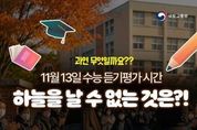 [ 한국미디어뉴스 이원영 기자 ] 하늘을 날 수 없는 것들은? ■ 전면 통제대상 · 모든 항공기 이륙 금지 (비행 중 항공기 → 3km 이상 상공에서 대기) · 헬기 · 경량항공기 그리고 초경량 비행장치(드론 포함) 모두 STOP! * 예외: 비상·긴급 항공기 영어 듣기평가에 방해가 되는 '항공기소음 최소화' ■ 언제 통제되나요? 11월 13일(목) 13:05~13:40(총 35분) ※ 듣기평가 전·후 5분 포함 수험생에게 조용한 하늘을! 국민 여러분의 협조를 부탁드립니다.