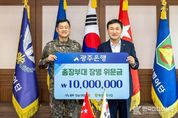 [ 한국미디어뉴스 이종철 기자 ] 광주은행은 26일, 77주년 국군의 날을 앞두고 지역방위 책임사단인 제31보병사단(사단장 이일용)을 방문해 위문금 1천만원을 전달하고 장병들을 격려했다고 밝혔다. 이날 전달식에는 고병일 광주은행장, 이일용 제31보병사단 사단장 및 관계자가 참석한 가운데, 지역 안보의 최일선에서 헌신하는 장병들의 노고에 감사를 전하는 뜻깊은 시간을 가졌으며, 전달된 위문금은 장병들의 복지 증진과 사기 진작을 위해 사용될 예정이다. 고병일 광주은행장은 “지역민들이 안심하고 일상을 누릴 수 있는 것은 국토방위를 위해 헌신하는 장병 여러분 덕분이다”라며, “광주은행은 지역 대표은행으로서 ESG경영을 기반으로 다양한 사회공헌 활동을 지속적으로 확대해 나가겠다”고 말했다. 한편, 광주은행은 매년 제31보병사단을 방문해 위문활동을 이어오고 있으며, 군 장병 적금 및 전용 제휴카드 출시 등 맞춤형 금융서비스 제공에도 앞장서고 있다.