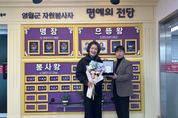 [ 한국미디어뉴스 이원영 기자 ] 쌍용사랑 봉사회 김성순 씨가 봉사 실적 5,000시간을 달성해 2025년 강원특별자치도지사 명의의 자원봉사 ‘으뜸왕’ 칭호를 받았다. 이는 2020년 이후 5년 만에 탄생한 영월군 두 번째 으뜸왕으로, 김성순 씨의 영월군 자원봉사자 명예의 전당 등재는 12월 9일에 진행됐다. 영월군 자원봉사자 명예의 전당은 나눔과 헌신으로 지역사회에 공헌한 봉사자에게 예우를 제공해 자긍심을 높이고, 지속적인 자원봉사 활동을 확산하기 위해 마련된 제도다. 강원특별자치도지사 명의의 자원봉사 칭호는 1365 자원봉사포털 누적 실적(2007년 이후)을 기준으로 부여된다. 봉사 시간에 따라 ▲500시간 동장 ▲1,000시간 은장 ▲1,500시간 금장 ▲2,000시간 봉사왕 ▲5,000시간 으뜸왕 ▲10,000시간 명장으로 구분된다. 전정은 센터장은 “김성순 씨의 오랜 헌신에 깊이 감사드리며, 이러한 예우가 봉사자들의 자긍심을 높이고 앞으로도 지속적인 참여를 이끄는 계기가 되길 바란다”라고 말했다.