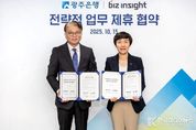 [ 한국미디어뉴스 이종철 기자 ] 광주은행은 15일, 라이프케어 전문기업 비즈인사이트(대표 김상수)와 전략적 업무 제휴 협약을 체결했다고 밝혔다. 이번 협약은 양사가 긴밀한 협력 체계를 바탕으로 금융과 라이프케어를 결합한 전용 상품 및 서비스 개발과 공동 마케팅 추진 등 다각적인 제휴를 통해 새로운 디지털 금융 서비스를 선보이기 위한 목적이다. 이날 협약식에는 광주은행 변미경 디지털본부 부행장과 비즈인사이트 김상수 대표가 참석했으며, 변화하는 디지털 환경 속에서 양사가 상호 시너지를 창출하고, 고객 중심의 혁신 서비스를 지속적으로 확대해 나가겠다는 뜻을 모았다. 특히, 양사는 이번 제휴를 통해 전용 상품 및 서비스 개발, 공동 마케팅 등 차별화된 협력 방안을 추진하여, 디지털 전환이 가속화되는 환경 속에서 고객 만족도를 높이는데 주력한다는 방침이다. 한편, 광주은행과 비즈인사이트는 지난 9월 25일부터 ‘와이즈한 웰니스 라이프의 시작’ 이벤트를 진행 중이다. 해당 이벤트는 광주은행 계좌로 급여 또는 연금을 신규 수령하거나, 기존 타행에서 광주은행으로 입금 계좌를 변경한 고객을 대상으로 진행되며,
