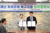 [ 한국미디어뉴스 이원희 기자 ] 남양주시는 30일 구리‧남양주지역건축사회와 재난으로 주택 피해를 입은 시민의 신속한 주거 안정을 지원하기 위한 ‘재난 피해 주택 신축 지원 업무협약’을 체결했다고 밝혔다. 이번 협약은 재난 발생 시 주택 피해를 입은 시민이 빠르게 일상으로 복귀할 수 있도록 민관 협력 지원체계를 마련하는 데 목적이 있다. 특히 지난해 12월 행정안전부와 대한건축사협회가 체결한 재난 피해 주택 신축 지원 협약의 취지를 지역 현장에서 구현하기 위한 협력사업의 일환으로 추진됐다. 이날 협약식에는 주광덕 남양주시장 및 시 관계자, 구리‧남양주지역건축사회장 및 관계자 등이 참석했다. 양 기관은 재난 피해 주택 신축 지원을 위한 협력 방안과 역할을 공유하고, 현장 중심의 실질적인 지원 방안을 모색했다. 협약에 따라 시는 재난으로 주택 피해가 발생할 경우 건축 인‧허가 등 관련 행정절차를 적극 지원해 피해 시민이 신속하게 주거를 회복할 수 있도록 도울 예정이다. 아울러 구리‧남양주지역건축사회는 재난 피해 주택 지원을 위한 참여 건축사 인력풀을 구성해 시에 제공하고, 재난 피해 주택 신축 시 설