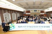 [ 한국미디어뉴스 이원희 기자 ] 인천 서구의회 《서구 도시농업 활성화 연구회》(대표 의원 김남원, 이하 연구회)는 14일, 서구청 대회의장에서 참가 신청 구민을 비롯해 활동을 공유해온 주요 인사 300여 명을 모시고 제4차 정기포럼 행사를 성공적으로 개최했다고 밝혀왔다. 이번 정기포럼은 ‘도시 속에 심는 마음, 치유와 회복으로 함께 자라는 우리’라는 주제로 2시간가량 진행됐다. 그동안 단체는 치유와 힐링의 도시농업 연구에 따른 자연친화·환경회복 도시환경 조성을 주제로 연구 활동을 지속해 왔다. 먼저 김남원 대표 의원으로부터 3년 간의 활동에 관한 연구 결과를 바탕으로 정책을 제안했다. 특히 그는 치유농업의 5년 로드맵을 제시하며 정책 개발과 정책실행의 거버넌스 구조를 강조했다. 또한 실행 과제로 ▲정책을 이어주는 일 ▲교육과 복지산업이 연결되는 접점 마련 ▲데이터를 구축 실효적인 결과 도출 ▲서구만의 지역 색깔을 만들어 목표를 완성하자고 강조했다. 이어 소속 의원 송승환, 이영철, 백슬기 의원의 연구단체 현장 견학 중 대표적인 우수사례와 서구청 서구1939 청년센터 도시농부 옥상 텃밭, 원예교육복지사의 반려