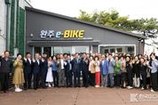 [ 한국미디어뉴스 이종철 기자 ] 완주군이 삼례 ‘쉬어가삼[례:]’ 유휴공간을 친환경 관광 거점으로 새롭게 탈바꿈 시키고, 체류형 관광객 유치를 위한 힘찬 시동을 걸었다. 30일 완주군은 삼례 ‘쉬어가삼[례:]’에서 ‘e-BIKE 자전거 대여소’ 개소식을 열었다. 이 자리에는 유희태 완주군수와 군의원, 지역주민 등 100여 명이 참석했다. 이날 첫선을 보인 자전거 대여소는 유휴공간을 활용해 지역 관광의 핵심 거점으로 재탄생시켜 주목을 받았다. 문화체육관광부의 ‘지역 자전거 여행 활성화’ 국가 공모사업에 선정돼 국비를 지원받아 추진됐으며, 올해부터 내년까지 2개년에 걸쳐 진행될 예정이다. 자전거 대여소는 삼례역에 내린 관광객 및 완주군민들에게 근대문화유산인 삼례문화예술촌을 지나 만경강 자전거길로 나아가는 ‘친환경 생태관광의 관문’ 역할을 수행하게 된다. 유희태 완주군수는 “버려진 공간을 재생해 완주 관광의 새로운 원동력을 만들고, 군민 여러분과 함께 그 출발을 축하하게 되어 매우 기쁘다”며 “오늘 문을 연 자전거 대여소를 시작으로 완주를 찾는 모든 분들이 만족하는 체류형 관